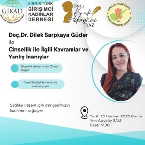 The “Write Your Own Story First” Project, held between April 5 and July 11, 2025, at the Gönyeli Alayköy Municipality in collaboration with the Association of Women Entrepreneurs and the Turkish Pediatric Association , Associate Professor Dr. Dilek Sarpkaya Güder, a faculty member of the Department of Birth and Women’s Health Nursing at the Faculty of Nursing, Near East University, and Head of the Sexual Health Services Unit, participated. She delivered a seminar on “Adolescent Sexuality and Sexual/Reproductive Health Issues,” designed for both families and young people.